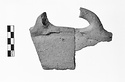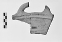 | Description: | Cooking pan. Three fragments, two joining, preserving part of wall and handles. Straight wall; shallow groove on rim; flat lip sloping inward; interior rim with wide groove and ridge. Vertical handles, round in section, attached at lip, projecting above rim. Micaceous salmon clay with large white, yellow and red inclusions. | |
