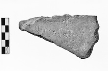 | Description: | Triangular coarseware wall fragment, broken all around. Inscribed on exterior surface name of Xanthippos. No patronymic or demotic: <graphic> Light yellowish-brown clay with white and brown inclusions. Cf. Agora XXV, nos. 1053-1069. | |