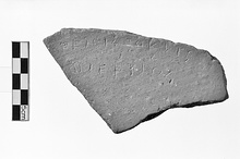 Incised letters, left to right, give name and (misspelled) demotic of Themistokles.