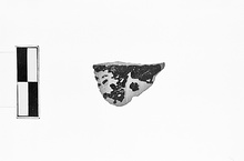 | Description: | Single small black-glazed chip, preserving one surface only, on which incised parts of two letters. Two letters, possibly beginning of "Themistokles": <graphic> Orange fabric, black glaze. | |
