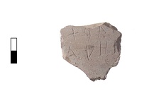 | Description: | Single wall fragment of coarseware vessel, broken all around. Two lines of letters preserved on exterior. Name of Xanthippos (?) on upper line: <graphic> Pinkish-orange fabric. | |