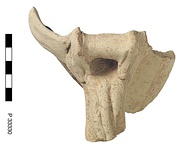 | Description: | Small part of rim, wall, and upper handle attachment. Rope handle with rotelle at attachment to rim. Soft, fine, household fabric (2.5Y 8/3). | |