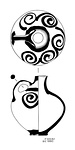 Description:   Intact except for narrow slit on shoulder. Small disk foot, rounded body, short neck, slightly flaring cutaway spout, handle round in section. Decorated with dull orange-brown glaze in bands around foot, base of neck and rim. Five linked spirals on shoulder and ivy leaves (?) around handle.