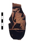 | Description: | Three joining fragments preserve lower body and part of wall. Two loose wall fragments (b, c). Missing base and upper parts. On reserved groundline seated female holding mirror. Reserved band above with maeander. Pinkish-orange fabric. Good shiny black glaze. | |