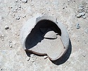 | Description: | Missing about one-fifth of body, handle and half of rim. Mended from five fragments. One loose rim fragment (b). Squat body, slightly rounded base. High thin flaring rim. Orange fabric, fired brown to gray. White inclusions. | |