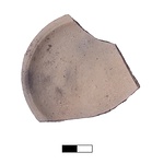 | Description: | Large pyre saucer. Single fragment. Two thirds of wall and rim missing. Slightly raised base with string marks. Shallow saucer with slightly thickened rim. Unglazed; burnt. | |