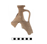 | Description: | Fragment a (whole neck with two joining pieces) preserves less than half of neck and mouth, one handle, part of shoulder and upper body. Fragment b (three joining pieces) and fragments c-g, loose fragments of wall and belly. Flaring rim with square profile. Short, narrow neck with drip ring at point of upper handle attachment, strap handle. Slightly angular shoulder. Soft, local fabric (pink temper fabric), with abundant large pink schist inclusions. Imitates imported narrow-necked amphoras (Agora XXXIII, Amphora form 2). | |