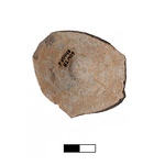 | Description: | Center of lid preserved with knob. Broken all around. Lid for a lopadion with a short, flat knob. Micaceous pink-orange clay. | |