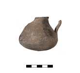 Description:   Mended from six fragments, parts of body and most of rim missing. Bottom part of handle preserved.