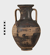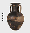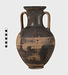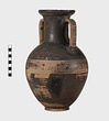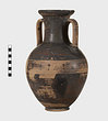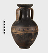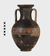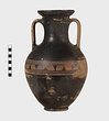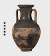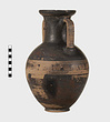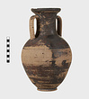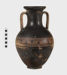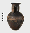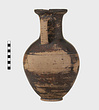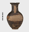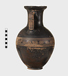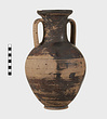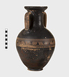 | Description: | Neck mended from many pieces; pot complete save small chips. Outside covered with glaze, save underside of base, handles and reserved band around center, which is nearly filled by the pattern in narrow stripes of glaze. Cross-striped ribbon handles. Unglazed inside save band 0.008m. wide within rim. Buff clay. Chipped mottled glaze, fairly solid over one large part. | |