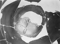| Description: | The handle and much of the wall missing; restored in plaster. Low base ring; deep bowl with slightly flaring lip; loop handles. On the floor are four stamped palmettes joined by arcs and enclosed by a hatched circle; in the center a small circle. Bands reserved on the bottom. The lip slightly offset on the inside only. Cf. Agora XII, no. 603. Hesperia 24 (1955), p. 186, under no. 28. | |