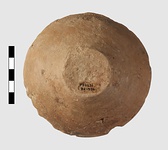 | Description: | Nearly complete, two small fragments mended at rim. Chipped along rim, handle missing. Surface and glaze worn and spalling. Small flat base, shallow open saucer, slightly flaring rim. Remains of single vertical handle attached at rim. Thin reddish-orange wash/glaze on interior. Where surface preserved, possible traces of burnishing. Pinkish-orange micaceous fabric. Mycenaean LH IIIA. Cf. Agora XIII, no. XXIII-6. (P 23581). Cf. Hesperia 87 (2018), p. 663, n. 148. | |