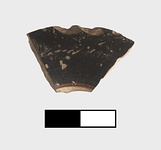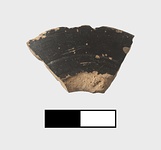 | Description: | Small fragment preserving less than 15% of original circumference of foot; chipped at edge. Tall flaring ring foot rounded on underside. Both faces with shiny black glaze. Incised line pre-glaze on exterior face. Pinkish-orange fabric. Attic. | |