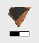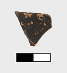 | Description: | Body sherd of an open vessel, probably a cup; broken all around. Interior black glaze flaking. Exterior glaze well preserved and shiny. Part of a figure, probably human, on exterior. Relief line for the outline. Preliminary sketch and contour lines. Traces of dilute wash on reserved area. Attic clay. | |
