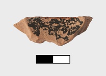 | Description: | Single fragment preserving one-quarter of the foot. Ring foot, exterior face rounded with slight carination. Neat incised line at join between wall and foot, wall flares outward. Dark, flaking black glaze preserved on exterior and interior face of foot. Reserved: outer face of foot and lower wall. Attic clay. | |