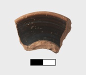 | Description: | Single fragment preserving ca. 20% of the original circumference of the foot. Flat top, torus exterior face, flat resting surface, interior rising to cone. Flat fillet at base of stem, incised grooves above, below. Streaky black glaze on exterior, shinier on interior. Reserved: exterior face and resting surface of foot. Attic clay. | |
