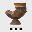 | Description: | Most of one side missing. Conical foot. Glazed on inside and out. On the rim, narrow zone of zigzags in dilute glaze. Reserved dot inside. | |