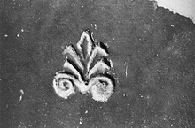 | Description: | Only the lower part remains. High base ring; slightly concave floor from which the upper wall begins to rise steeply. On the floor, within a rouletted circle are five stamped palmettes of which four remain. The glaze has fired to a rich chocolate brown both inside and outside; scratched away from the bottom of a shallow groove just above the base ring. ADDENDA Probably a two-handled bowl with vertical rim. | |