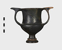 Description:   Missing: one vertical, flat-topped handle and fragments of body.