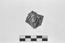 Description:   Western Sigillata fragment depicting the head of a goat in relief.