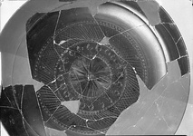 | Description: | Much of side wall missing and two half handles; restored in plaster. Foot ring delicately moulded, rim slightly offset on inside only. On the floor a medallion filled by an eleven-pointed star with hatched field, surrounded by successive bands: maeander, palmettes joined by arcs, maeander, cross-hatching, ovules. Extremely thin hard fabric, rich black glaze. | |