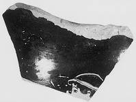 | Description: | Fragment from the beginning of handle at right end. Head of youth(?) or woman(?) to left. No relief contour. Inside the neck glazed; plain below. | |