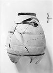 | Description: | About half the body and the ring foot preserved. Mended from many pieces. A trace of handle attachment remains. Pinkish buff clay; buff slip. Dull brown glaze on the outside of the foot and for two bands on the body. | |