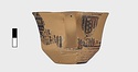 | Description: | From a cup similar to P 4986 (Β 1330), but deeper bodied and without a stand. Restored in plaster with a second handle. Flat bottom; inside, bands and interlocking hanging and standing vertical strokes. Outside, bands to lower handle attachment; on body, maeander between vertical zigzags. On resting surface, rings. | |