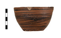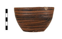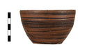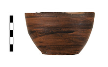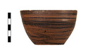 | Description: | Intact. Flat-bottomed handless deep bowl, with convex side wall and plain lip. Resting surface reserved. The rest of the bowl inside and out covered with thin streaky black glaze, probably put on while the pot was still on the wheel. Buff clay. | |