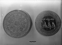 | Description: | The lid complete; one horse broken off but repaired; the body intact. a) Pyxis: Low pseudo-ring foot, convex side-wall, lip flanged inside; flange and lid pierced for tying. Wide band around bottom; between two narrow bands a broad zone; in panels, hatched swastikas with dot rosettes between their arms. Between panels, parallel horizontal zigzags bordered by vertical lines on each side. On bottom: center, many-rayed star; around it, a ring of concentric lozenge-shaped leaves with dot rosettes between their tips; between three bands inside and out. Around edge wide band. b) Lid: Shallow convex lid with three-horse handle. Around edge: diagonal strokes, three bands, row of linked dots, three bands, diagonal strokes. Horses glazed black; bands on reserved manes and tails, linked dots between bands across reserved chests, St. Andrew's crosses on faces. Creamy slip; dull black and brown glaze, much peeled. | |