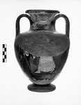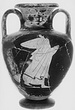 | Description: | Foot and fragments from wall, missing. Restored in plaster. A. Woman running right. B. Lower part of draped figure running left. On both sides, a female figure clad in chiton and himation moves either right or left. Very sketchy drawing; dull and blotchy glaze; no relief contours. | |