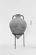 ADDENDA P 5174: Piriform body, terminating below in a knob. Rim neatly profiled, flat on top. Fine red clay, unglazed.