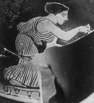| Description: | Squat lekythos. Mended from three pieces; the lip missing and large fragments of the body. The underside of the ring foot reserved. On the groundline of the egg pattern, draped woman, bending over toward the right, arms extended in front of her. No contours. The glaze dull, rather mottled. The reserved underside washed with pink. | |
