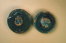 Dull black glaze, fired red inside.