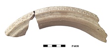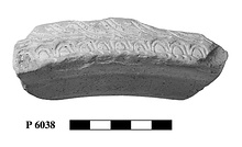 | Description: | From large open pot covered with white slip. On the outer face of rim, a stamped egg pattern. Gritty red clay. Cf. P 20254. | |