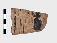 | Description: | From rim of large heavy black glazed amphora with squared rim. The top of the rim reserved. Incised inside: <graphic> | |