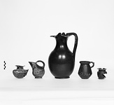 Description:   Mended from several fragments; handle and part of body and base missing. Wide, flaring ring foot; short wide neck; out-turned rim.