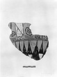 | Description: | From a large closed pot. Around the bottom, a double series of rays below a triple ground line on which walk to the right the remains of four persons in long dresses, one of them dotted and another filled-in with white; a guilloche running vertically separates the figures one from the other. The pot was covered with a creamy slip, now peeling badly carrying the figures with it. Attic clay. | |