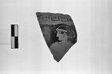 | Description: | Maeander below shoulder. Head and upper body of draped woman, left. | |