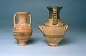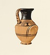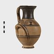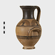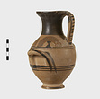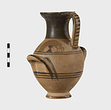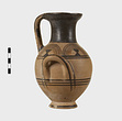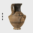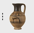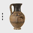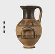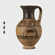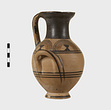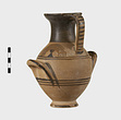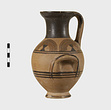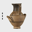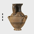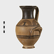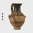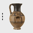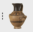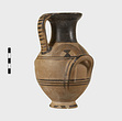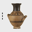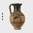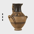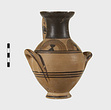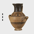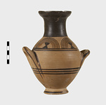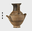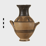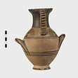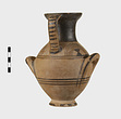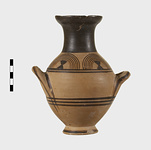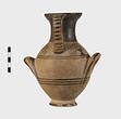 Description:   Rather high ring foot. Glazed band around foot; three below handles. On shoulder, four sets of seven concentric semicircles, with hourglass ornament inside. Neck and lip glazed. Horizontal bands on vertical handle.