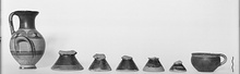 | Description: | Conical base similar to P 6691 (ΠΘ 273), but smaller. Reserved band around bottom. None of the floor preserved. Bluish-black glaze, somewhat peeled. | |