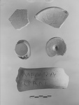 | Description: | Fragment from the base of a large open pot, with brown glaze on inside and on upper part of base ring outside. Letters on underside: <graphic> ADDENDA: | |