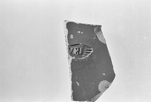 | Description: | From the floor of a stamped Western Sigillata dish. Part of a foot-shaped stamp: <graphic> | |