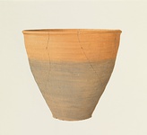 | Description: | Mended from many pieces; one small bit missing. Sharply flaring type. Red to gray clay. | |