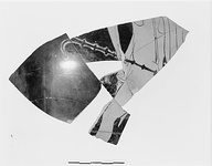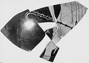 | Description: | Probably from a column krater, as P 7249. a) The central part of a nude male figure seen from behind, striding left, wearing an himation over his right shoulder and carrying in his left hand a knobbed black crooked stick. Immediately to the left of the figure's thigh the surface seems to have been damaged in making. Note also the purple line which crosses the figure's leg near the bottom of the fragment. No relief contours. The background for the stick is reserved. b) Plain wall piece with a trace of a handle attachment. Red to black glaze inside. c) Plain wall piece; red to black glaze inside. | |