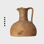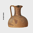 Description:   Base and lower part of body and handle missing. Several small fragments do not join. Straight neck and trefoil mouth. On body, triple reserved bands, and a band of linked concentric semicircles on shoulder. Two more similar bands at upper and lower edges of neck. Between, hatched maeander, left. In panel on front below neck, five dotted concentric circles. On edge of lip, vertical hatching.