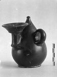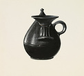 | Description: | [Originally identified as Feeder and Rattle (?)] Lip of spout broken way (found later). Mastos-shaped closed vase with a vertical loop handle and a vertical spout, set an an angle of 90° to one another. A small air hole near the top. Inside, a small bead. Low flat base. Firm black glaze over all. Cf. Jacobsthal (1912), Göttinger vasen, Berlin 1912, p. 29, no. 56, pl. XXI:60, illustrates another also with pebble inside. Cf. Breccia (1912), Necropoli di Sciatbi, p. 61, no. 155, pl. LII:97. Cf. Pagenstecher, Exp. E. von Seiglin II, p. 139, fig. 144d. ADDENDA Another in Sicyon museum, found in Sikyon, apparently identical (S. Weinberg, 1937). | |