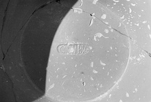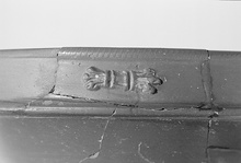 | Description: | Ring foot; keeled rim broken off. Restored in plaster. At center of floor, foot-shaped stamp: <graphic> | |