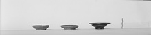 | Description: | Low foot, slightly rising; thick rim. Pinkish clay. Mottled red to black glaze, somewhat chipped. Resting surface unglazed. | |