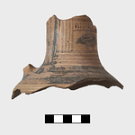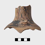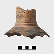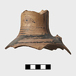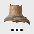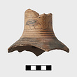 | Description: | Neck and part of shoulder; mouth and handle missing. In panel on front of neck, two facing birds feeding; double chevron column between them. Below, bands. On body, wide and narrow glaze bands. Bluish-black glaze, much peeled. | |